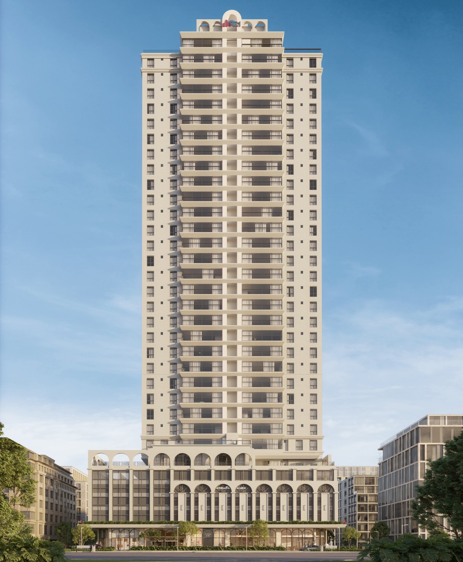 Um empreendimento neoclássico que combina arquitetura de herança francesa, interiores bem resolvidos e áreas de convivência pensadas para o uso cotidiano.